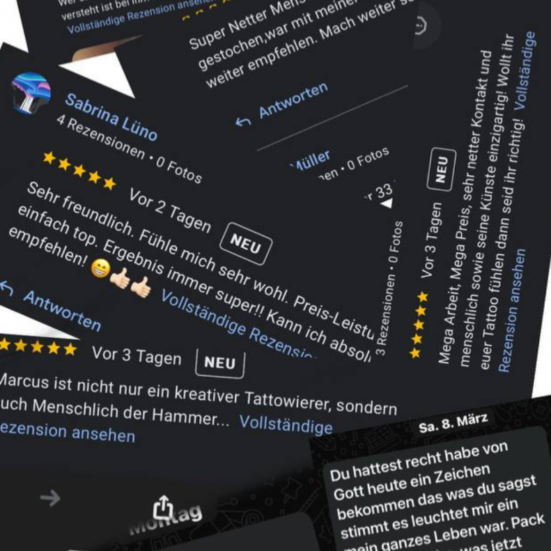 Als Tätowierer in Duisburg nehme ich mir Zeit für deine Ideen und deine Geschichte. Egal ob du dir ein kleines Tattoo stechen lassen möchtest, einen Namen verewigen willst oder ein größeres Projekt wie ein Sleeve planst. Jedes Tattoo wird individuell gestaltet und mit höchster Sorgfalt umgesetzt.